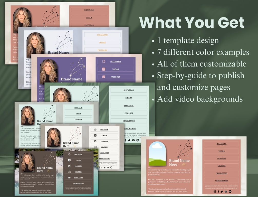 Are you tired of juggling multiple links across different platforms? With the Link In Bio Canva Website Landing Page, you can consolidate all your important links into one beautiful, customizable landing page.