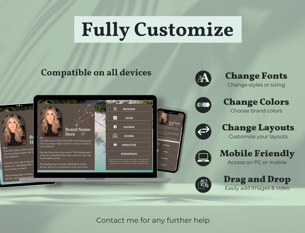 Ready to simplify your online presence and enhance your brand? Download the Link In Bio Canva Website Landing Page template now and start customizing your perfect landing page.
