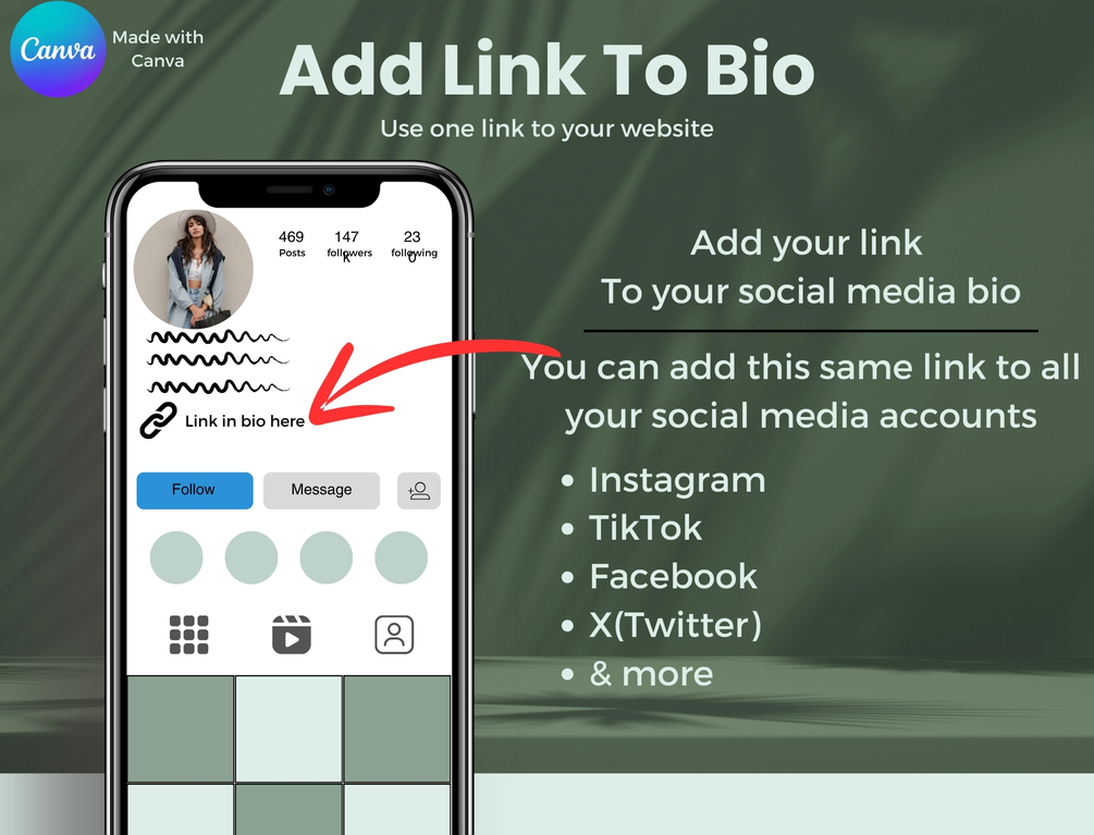With our Canva template, you can embed URL links to all your important digital assets in one place. No need to confuse your audience with multiple links scattered across different platforms.